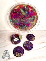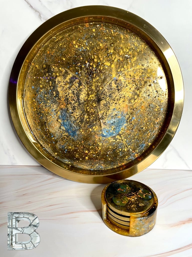 The Round Ritual Collection brings together two distinct expressions of transformation — each tray set telling its own story through resin, color, and symbolism.