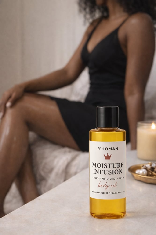 💧 4 oz Moisture Infusion Body Oil: Lightweight, radiant, and deeply hydrating. This indulgent oil blend soaks in fast, locking in moisture and amplifying your natural glow. Perfect for layering with your favorite scent or wearing bare. you in a cloud of sweetness and warmth that lingers like a love story.
