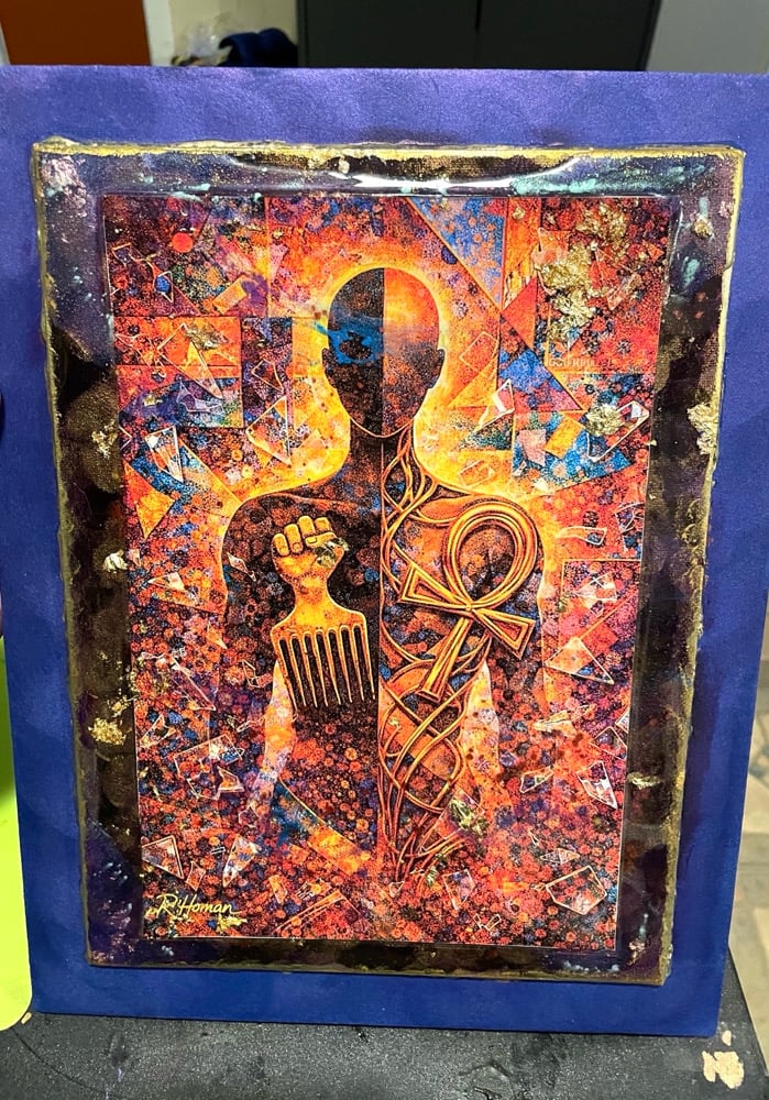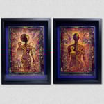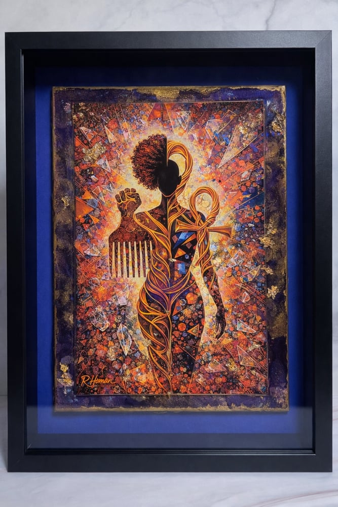Crowned in Contrast is a one-of-one shadow box art set featuring two 9x12 mixed media pieces encased within 11x14 deep frame displays.