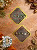 Deep green resin with gold edging, accented with metallic cowrie shells and botanical imprint. (Earthy. Ancestral. Grounded luxury.)