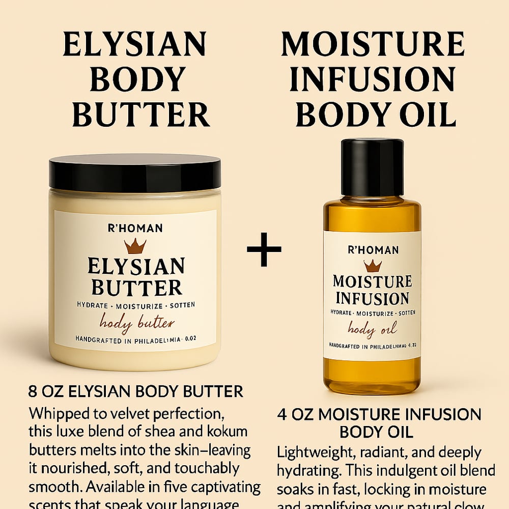 💧 4 oz Moisture Infusion Body Oil: Lightweight yet powerful, this fast-absorbing oil seals in moisture and leaves a healthy, natural glow. Wear it solo or layer it with your butter and mist for full-spectrum softness.